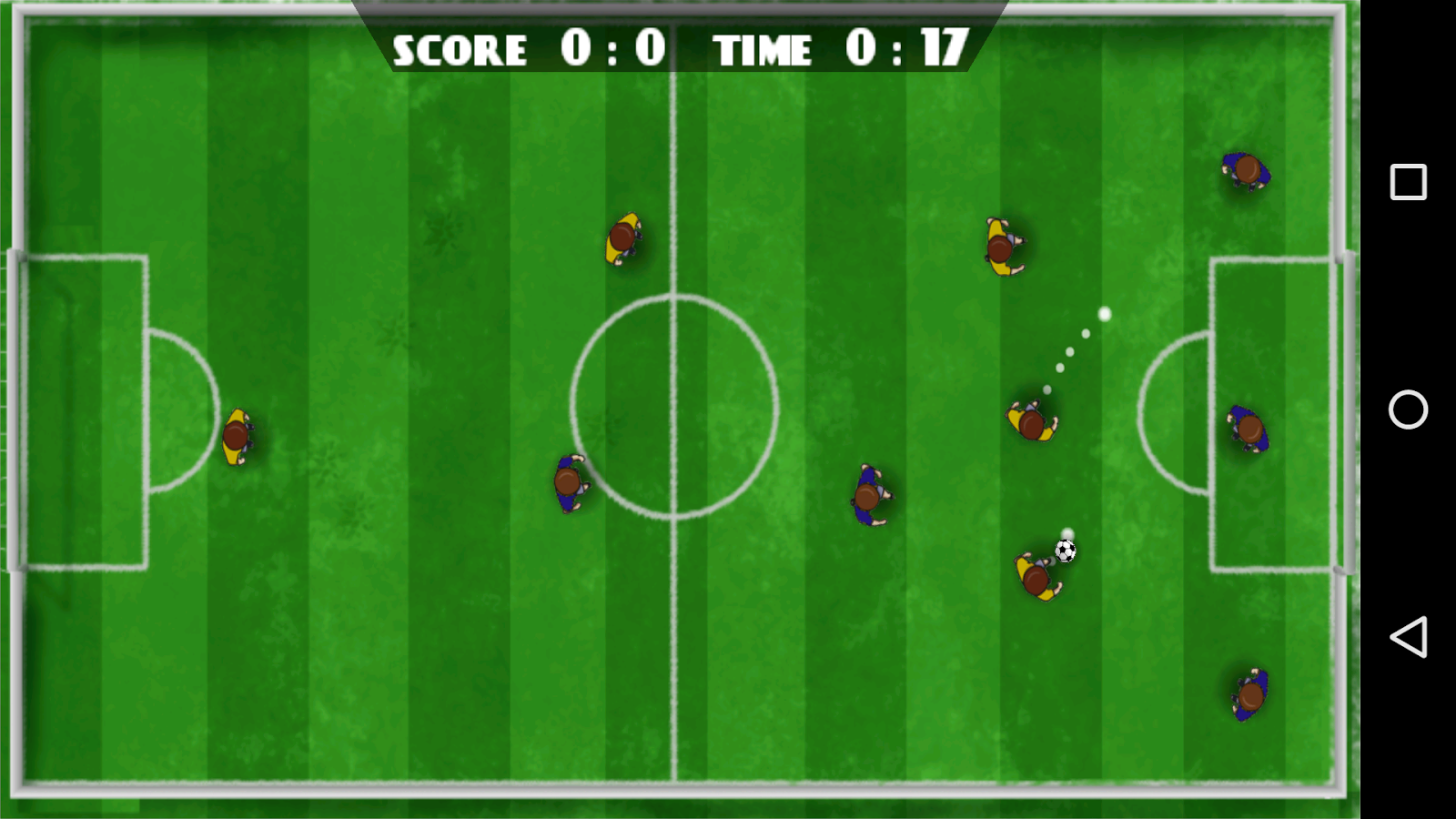 Keeping these things in perspective and the ongoing soccer world cup I decided to go with the simple swipe soccer game I had in mind. This is inspired by some very old PC soccer game I used to play back in college. I don't recall the name but I can recall the gameplay in my mind quite vividly. It was top down and really simple to control but at the same time immensely fun.